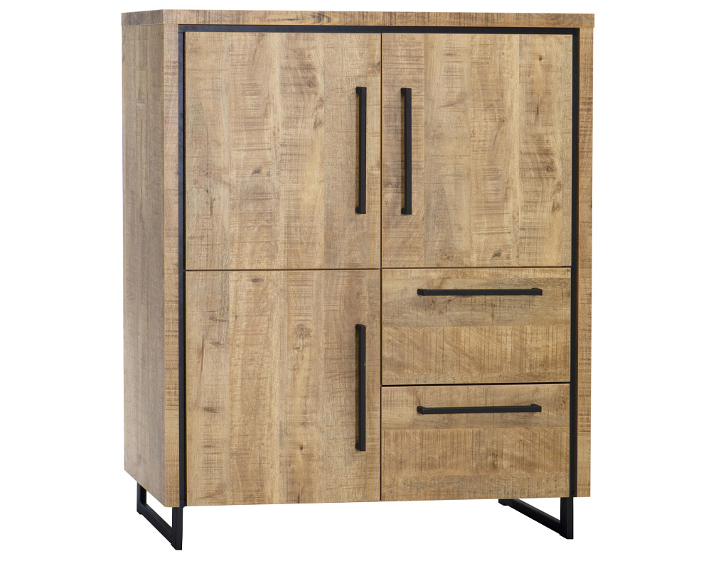Prachtig woonprogramma ALASKA in het o zo sterke en praktische lamulux in trendy decor Mango. mooi detail: belijning van de sleepoot loopt door in het woonprogramma. Dit programma kent vele uitvoeringen. Naast deze barkast zijn er ook dressoirs, tv-meubels, vitrinekasten en wandkasten te verkrijgen.