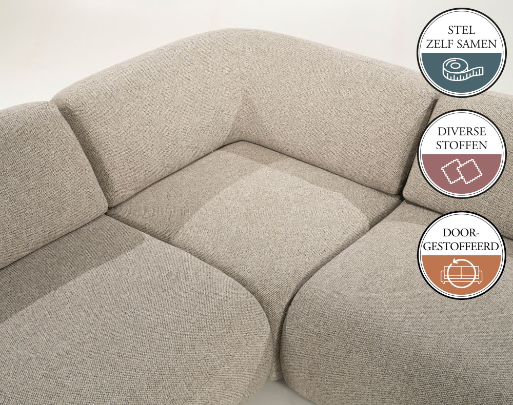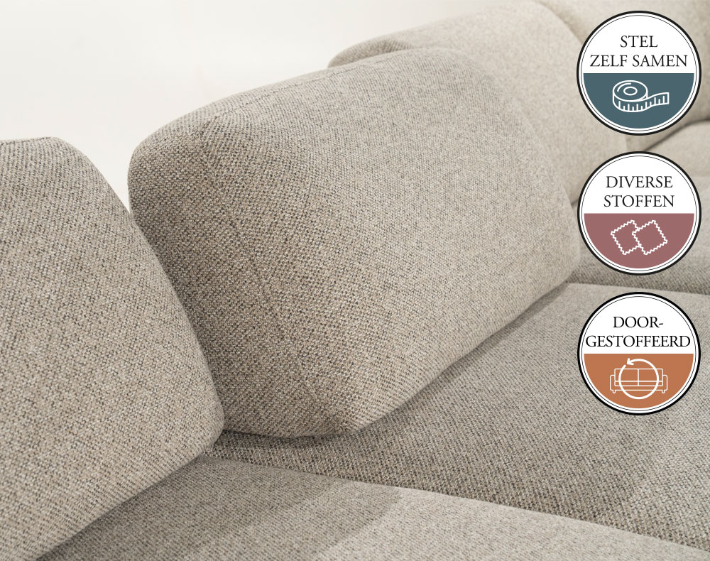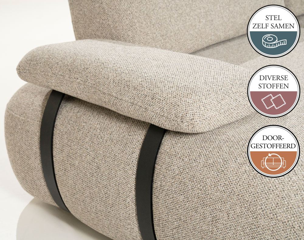 De bank EILEEN is een elementenbank. Dat wil zeggen dat je deze bank helemaal naar eigen wens en smaak kunt samenstellen. Je stelt deze EILEEN elementenbank zelf samen door de stappen in de configurator te volgen. Een elementenbank wordt altijd samengesteld (terwijl je ervoor staat) van links naar rechts.Extra optie: De EILEEN hocker (poef).