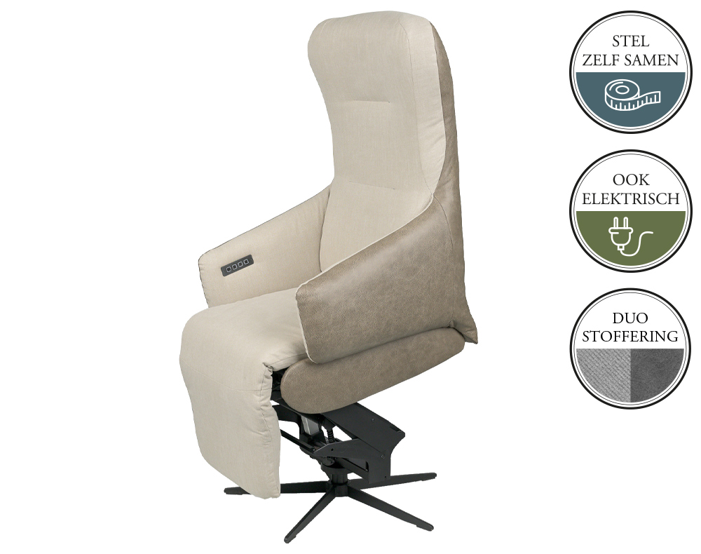 Deze relaxfauteuil is zowel elektrisch verstelbaar als met sta op functie mogelijk. Ook kan de relaxfauteuil van de medische funtie Hartwagen worden voorzien. De relaxfauteuil wordt standaard met accu geleverd. Verder heeft de relaxfauteuil nog een lendesteun en verwarmingsfunctie. Informeer naar alle mogelijkheden bij onze verkopers.