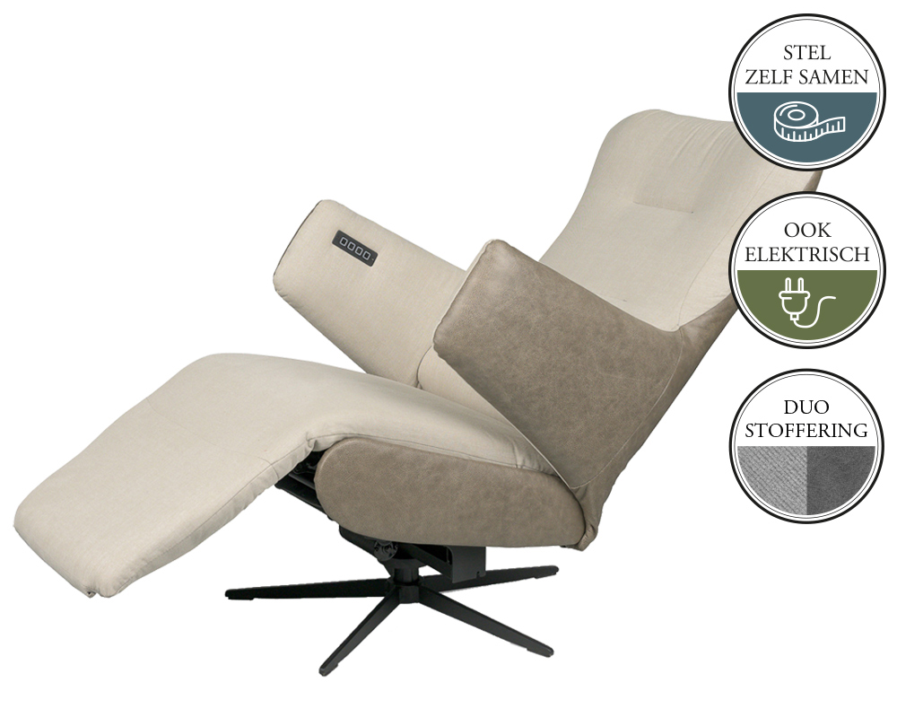 Zo zie je ook een meerprijs voor verschillende onderstellen bij relaxfauteuils. Ook dit heeft te maken met materiaal, moeilijkheidsgraad en gewicht.