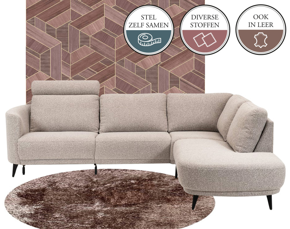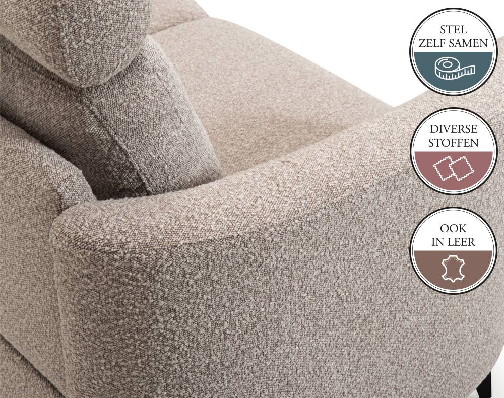 De bank JUUL is een elementenbank. Dat wil zeggen dat je deze bank helemaal naar eigen wens en smaak kunt samenstellen. Je stelt deze JUUL elementenbank zelf samen door de stappen in de configurator te volgen. Een elementenbank wordt altijd samengesteld (terwijl je ervoor staat) van links naar rechts.