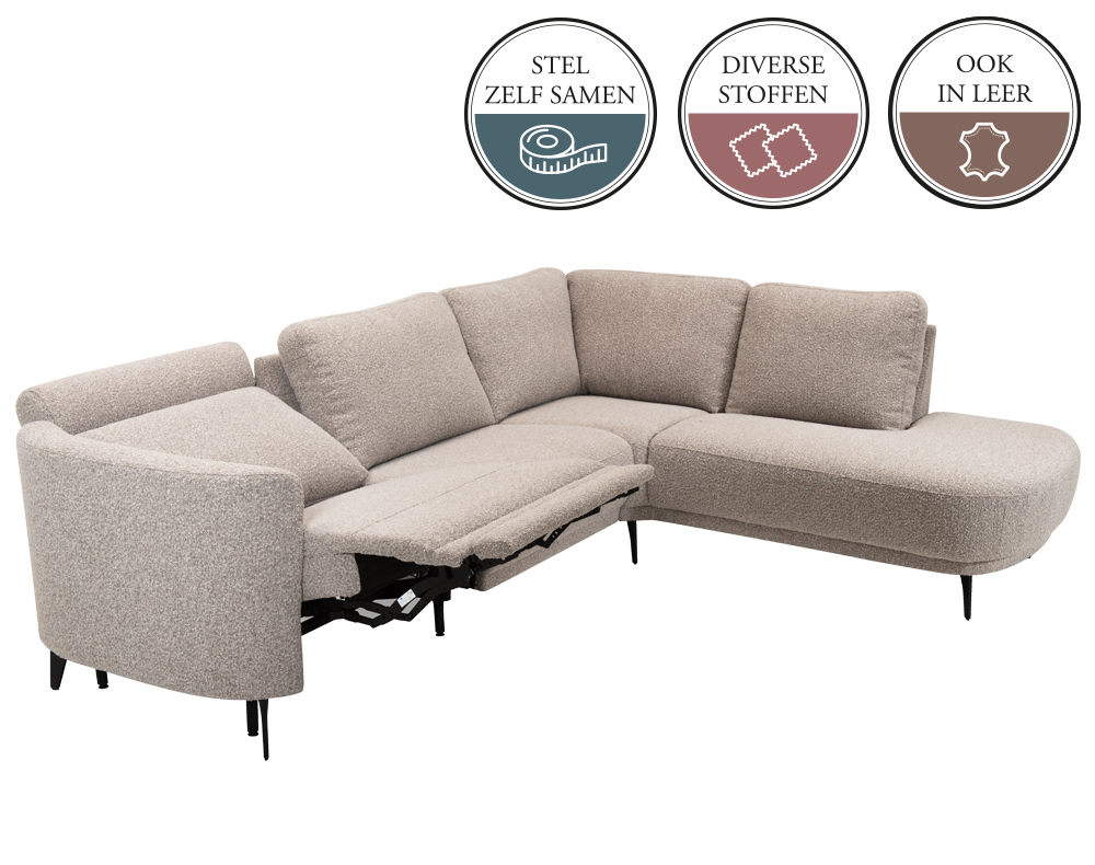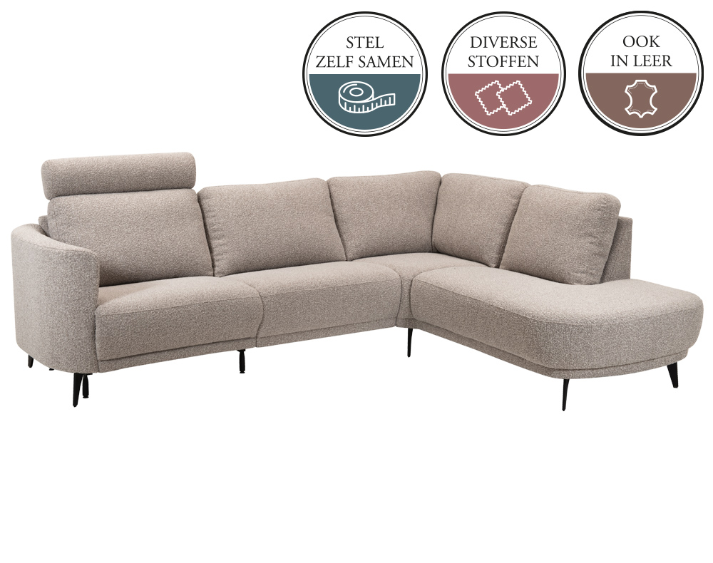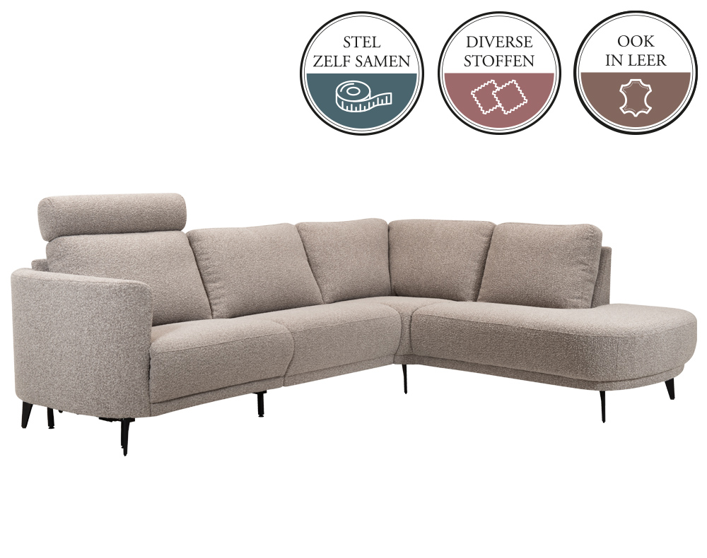 Deze prachtige elementenbank JUUL heeft niet alleen een geweldig comfort maar is ook het topunt van elegantie. Door haar opvallende glooiende arm en rond lopende eindstuk helemaal van nu. Er is een ruime keuze uit vele stofsoorten en microleer of leder in een groot aantal kleuren.