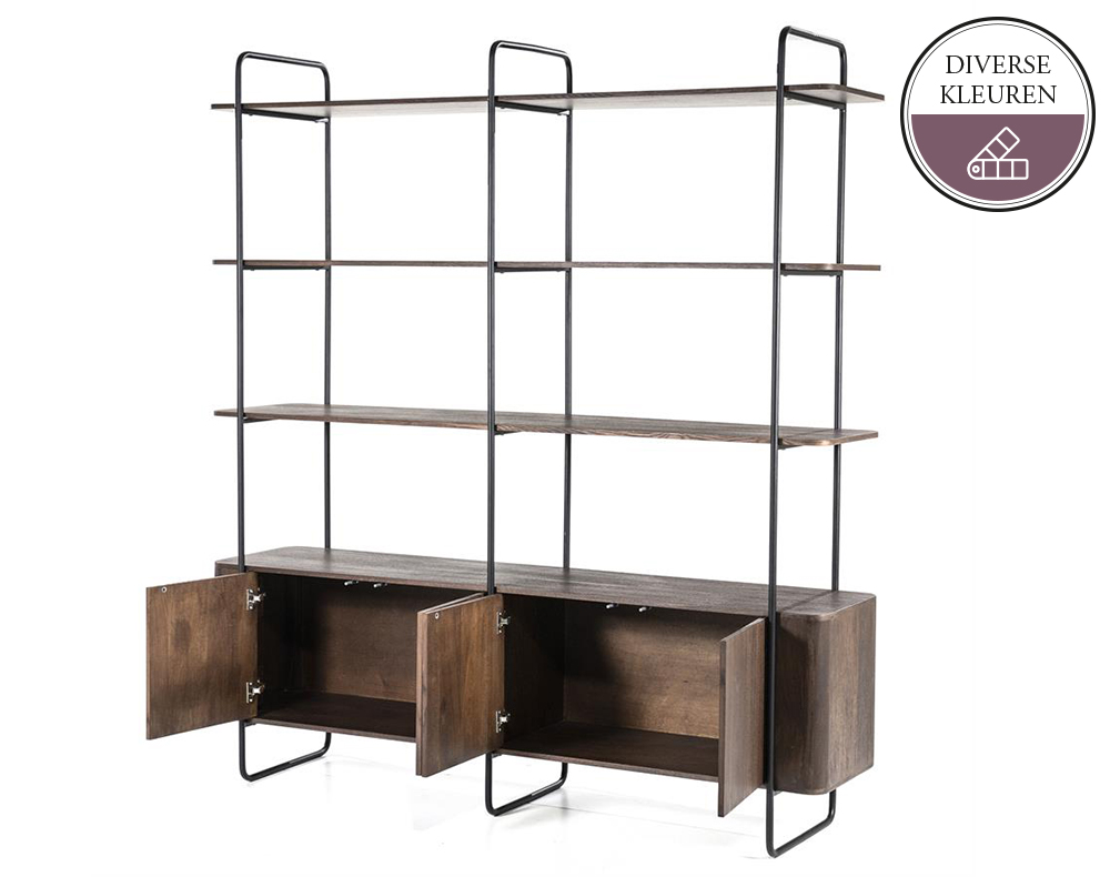 De MADRID Wandkast is verkrijgbaar als 2-deurs kast zowel in het zwart als bruin. In het bruin is de kast ook als 4-deurs leverbaar. De kast is gemaakt van Mango Hout in combinatie met metaal.