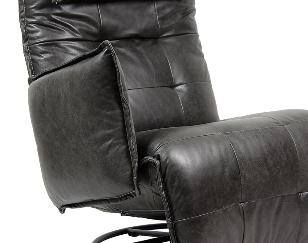 De bediening van de MAKARIOS relaxfauteuil wordt standaard uitgevoerd in RVS; zowel de tiptoets als het laadpunt. Ipv RVS is ook zwart als optie mogelijk.