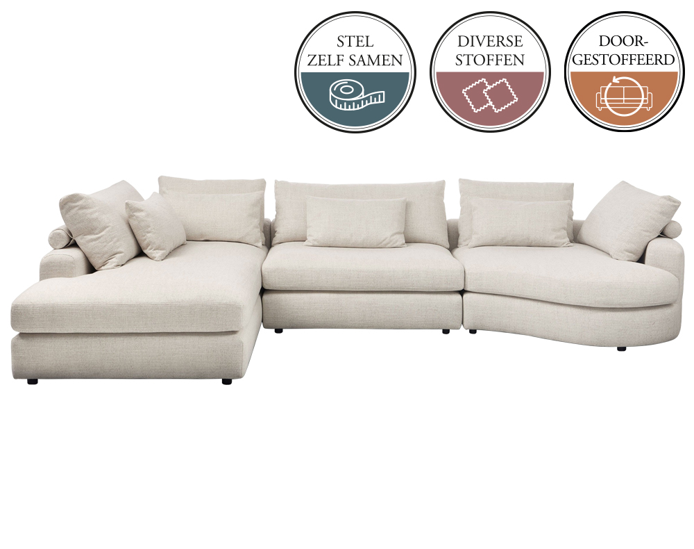 De bank NAEL is een elementenbank. Dat wil zeggen dat je deze bank helemaal naar eigen wens en smaak kunt samenstellen. Je stelt deze NAEL elementenbank zelf samen door de stappen in de configurator te volgen. Een elementenbank wordt altijd samengesteld (terwijl je ervoor staat) van links naar rechts.