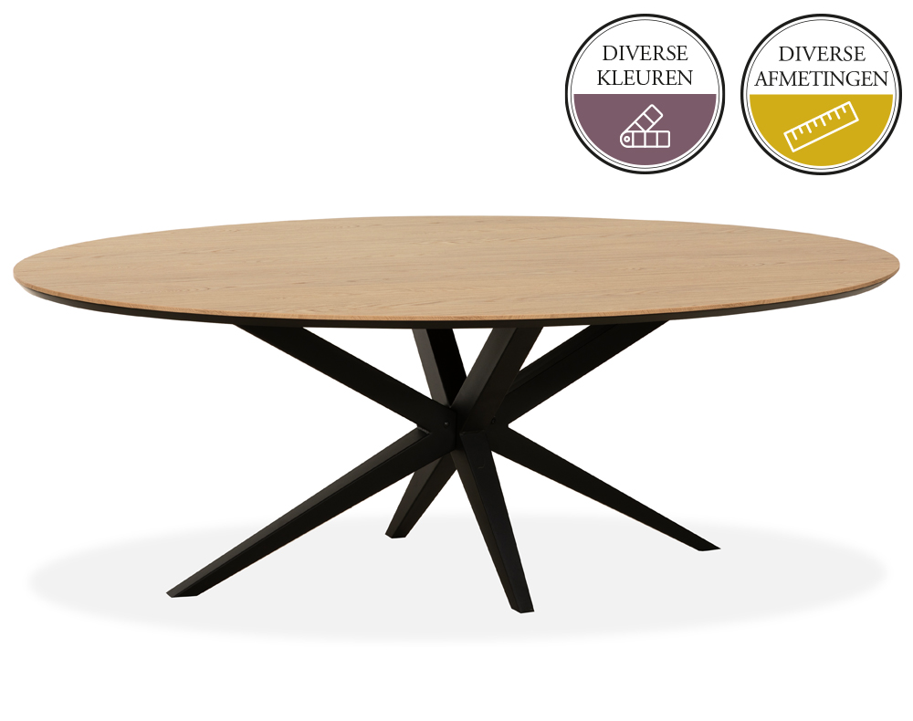 Door de vele mogelijkheden van de eettafel NIELS zit er altijd een tafel van jouw keuze bij. De tafels worden uitgevoerd met zwart metalen spinpoot. Er zijn ovale, Deens ovale, Deens vierkante, ronde en ook rechthoekige tafelbladen mogelijk.