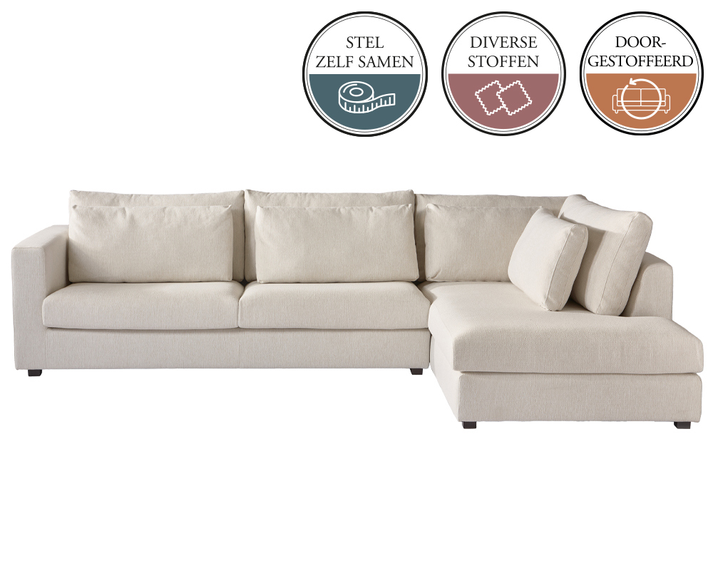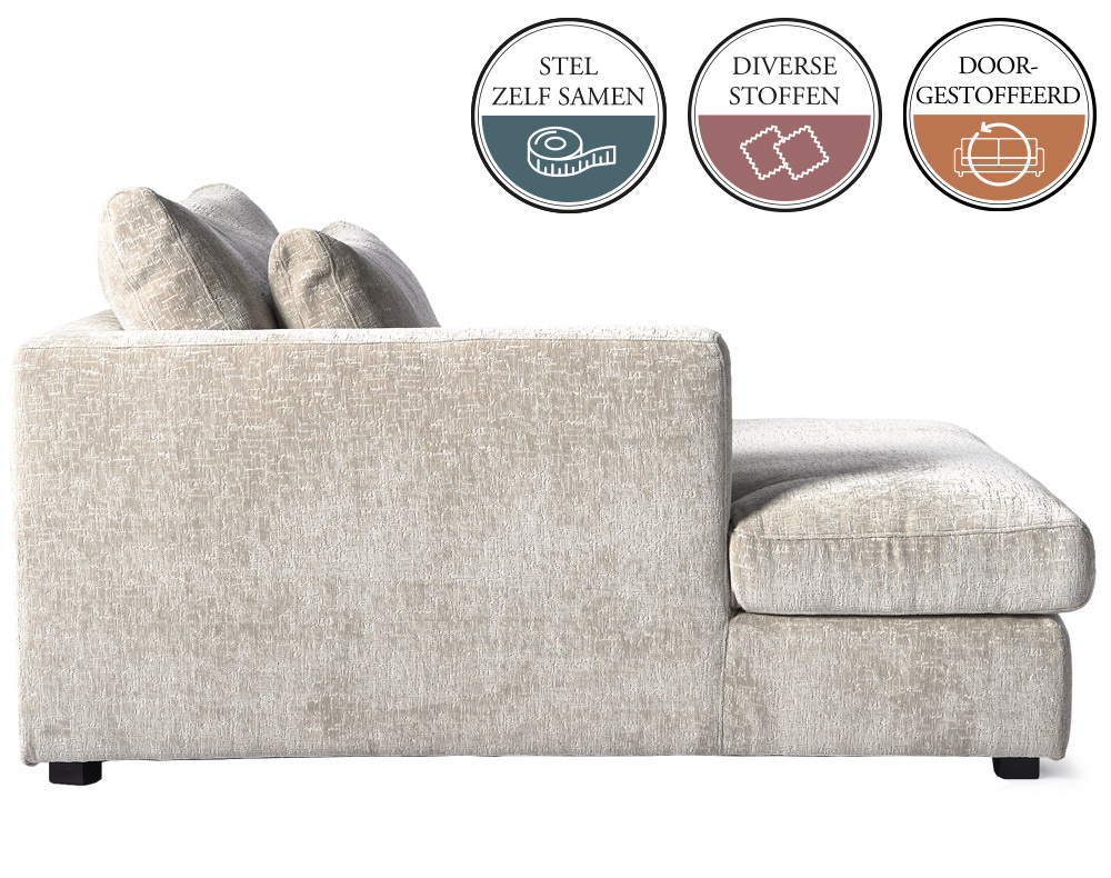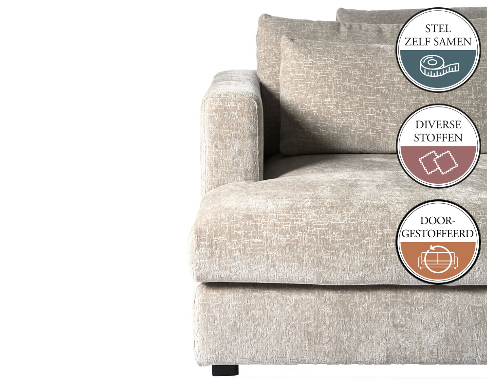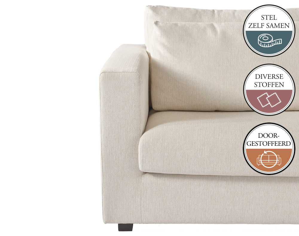 Omdat alle elementen van deze bank doorgestoffeerd zijn is het zelfs mogelijk 1 element te bestellen en kan je elk element vrij in de ruimte plaatsen.