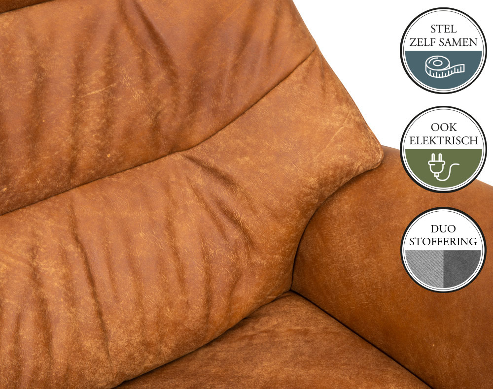 Leer heeft uitstraling! Leer is een natuurproduct en laat alle specifieke kenmerken van het dier, zoals schrammen en littekens aan de huid, zien. Dit geeft de specifieke stoere leer looks. Door de tijd heen wordt leer alleen maar mooier, wel is goed onderhoud van belang.