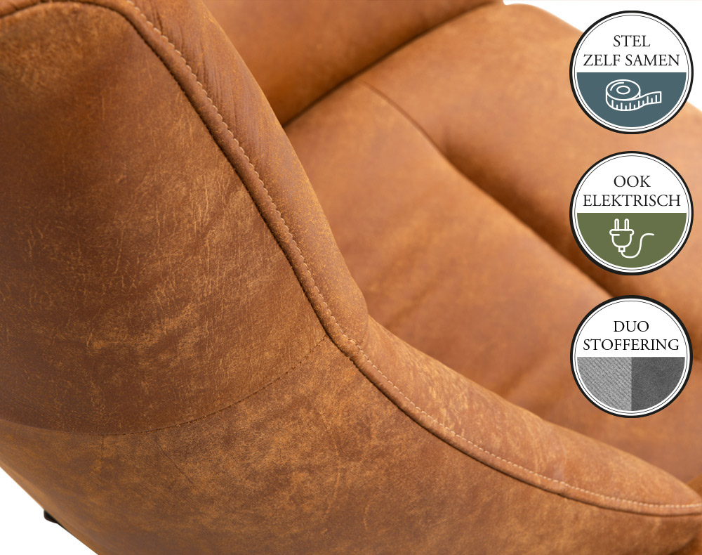 Wil je toch liever de fauteuil in één kleur, kies dan bij de stap duo stoffering voor nee. De hele fauteuil is dan in dezelfde stof, leerkwaliteit en kleur uitgevoerd.