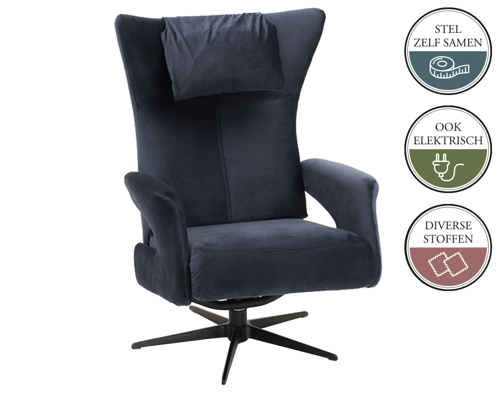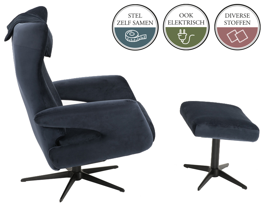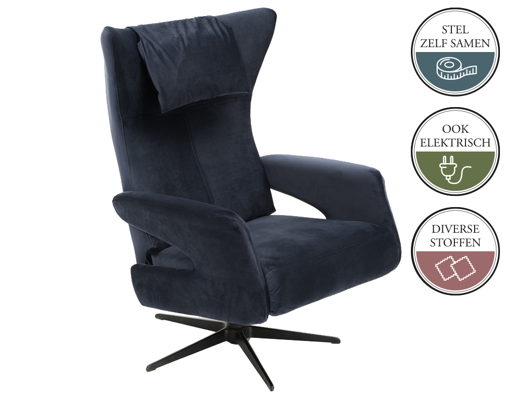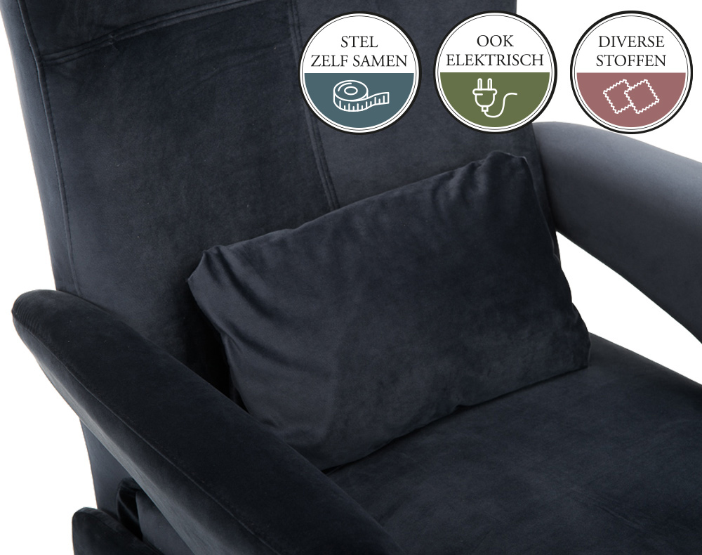 Deze relaxfauteuil is zowel manueel als elektrisch verstelbaar mogelijk.