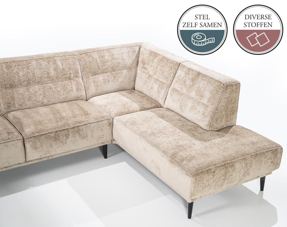 Je stelt deze SILVAN elementenbank zelf samen door de stappen in de configurator te volgen. Een elementenbank wordt altijd samengesteld (terwijl je ervoor staat) van links naar rechts.
