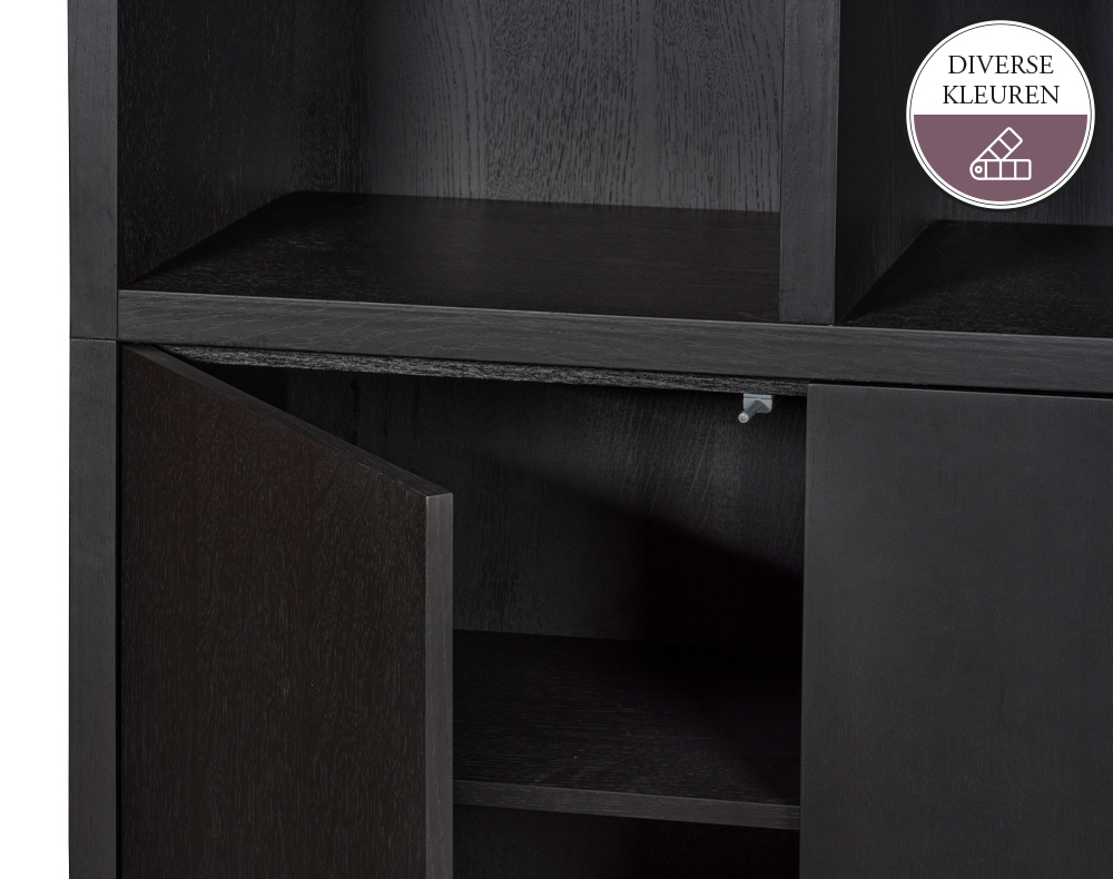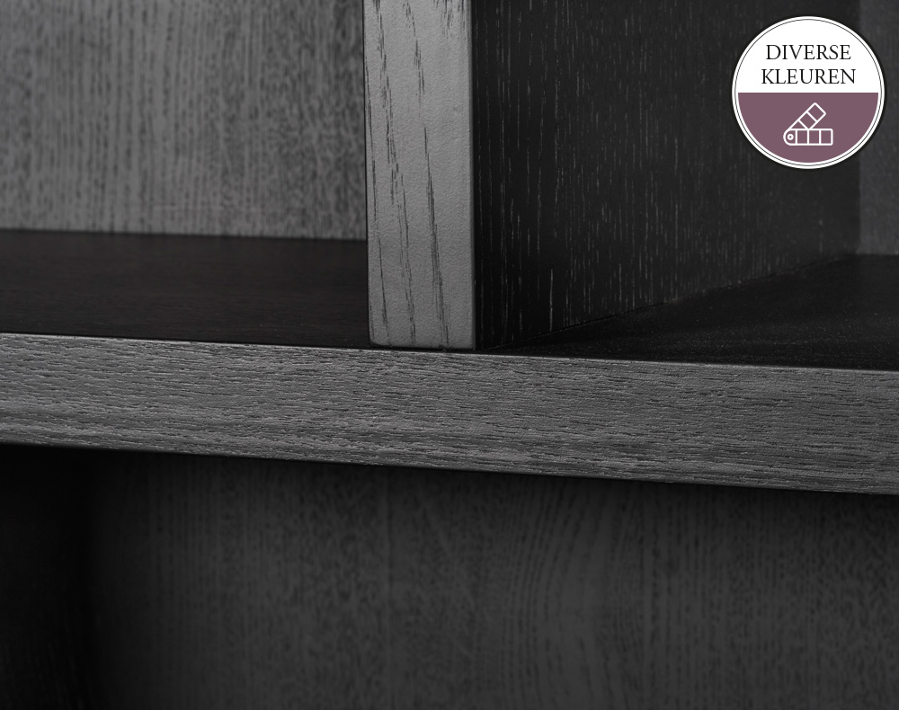 Kleuren: De wandkasten zijn te verkrijgen in Zwart, Natural Oak, Dear Brown of Cinnamon. De kasten kunnen ook als maatwerk en in een RAL-kleur geleverd worden. Informeer bij onze verkopers hoe dit geregeld kan worden. Je betaalt voor dit maatwerk een meerprijs.