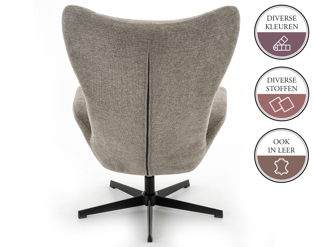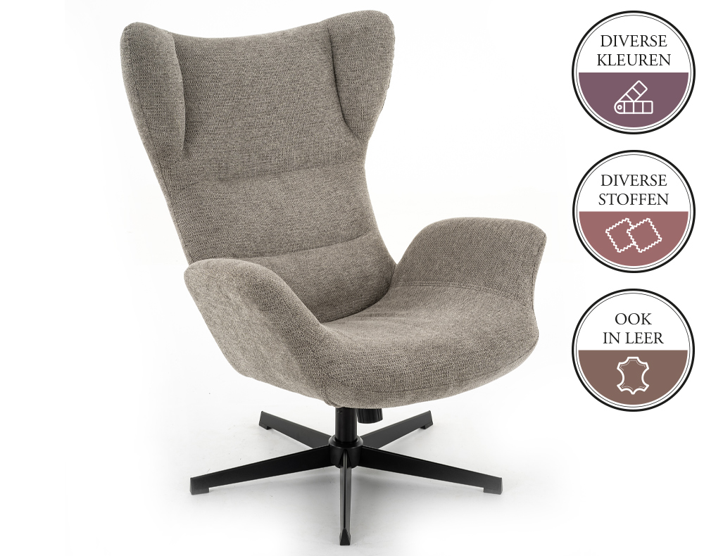 Wil je liever een andere stof of allicht leer? Kijk dan bij de TANELI Draaifauteuil zonder de toevoeging snel leverbaar. Onder dat artikel kan je kiezen uit alerlei verschillende stoffen, leerkwaliteiten of kleuren. TANELI is standaard uitgerust met een kantelfunctie waardoor je nog relaxter kan zitten!
