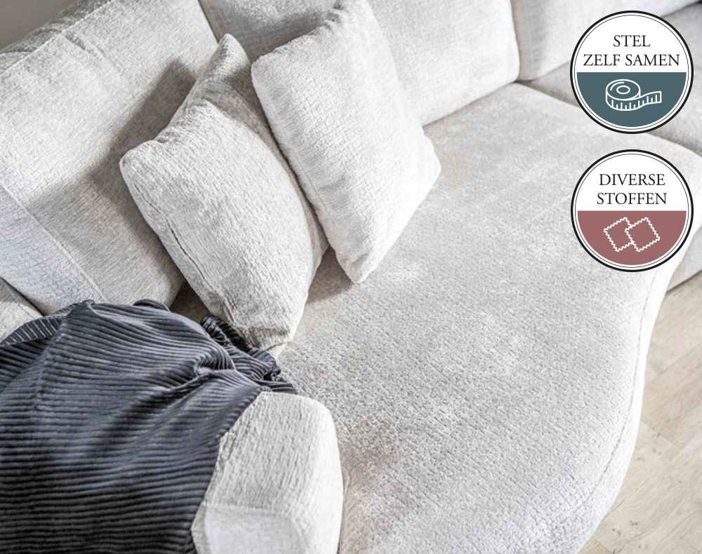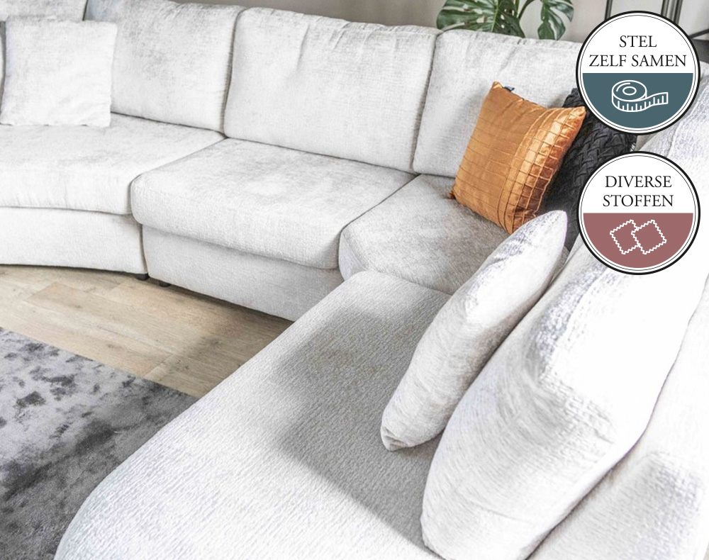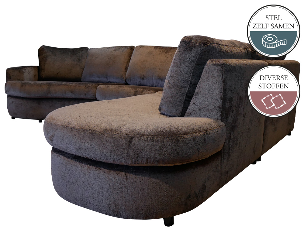 Loungebank 2.0. Deze loungebank ZAHIRA heeft naast geweldige looks ook een uitstekend comfort. Heerlijk cozy en rijk. Van een organische 3 zits tot een grote U bank. Alles is mogelijk met deze juweel. Er is een ruime keuze uit vele stofsoorten en microleer in een groot aantal kleuren.